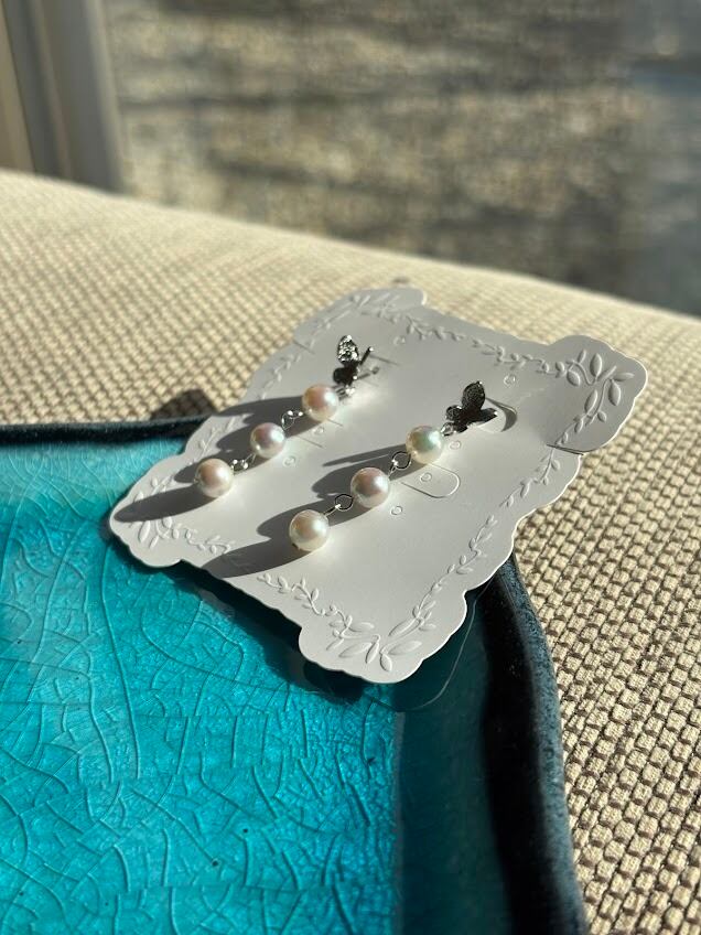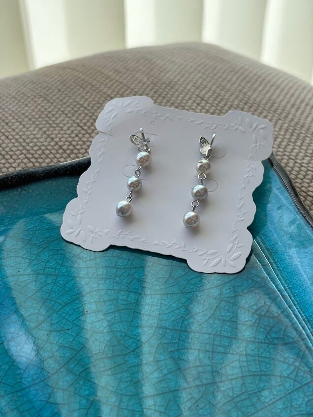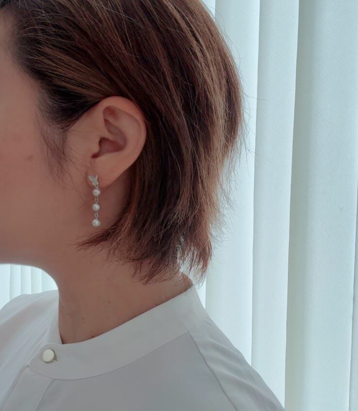 この舞い上がり蝶々ピアスは、シルバーカラーの蝶々が耳元で優雅に揺れ、六個の真珠が華やかさを加える特別なアイテムです。蝶々のデザインが可愛らしさを引き立て、軽やかに動く様子は、日常のコーディネートを一層引き立てることでしょう。